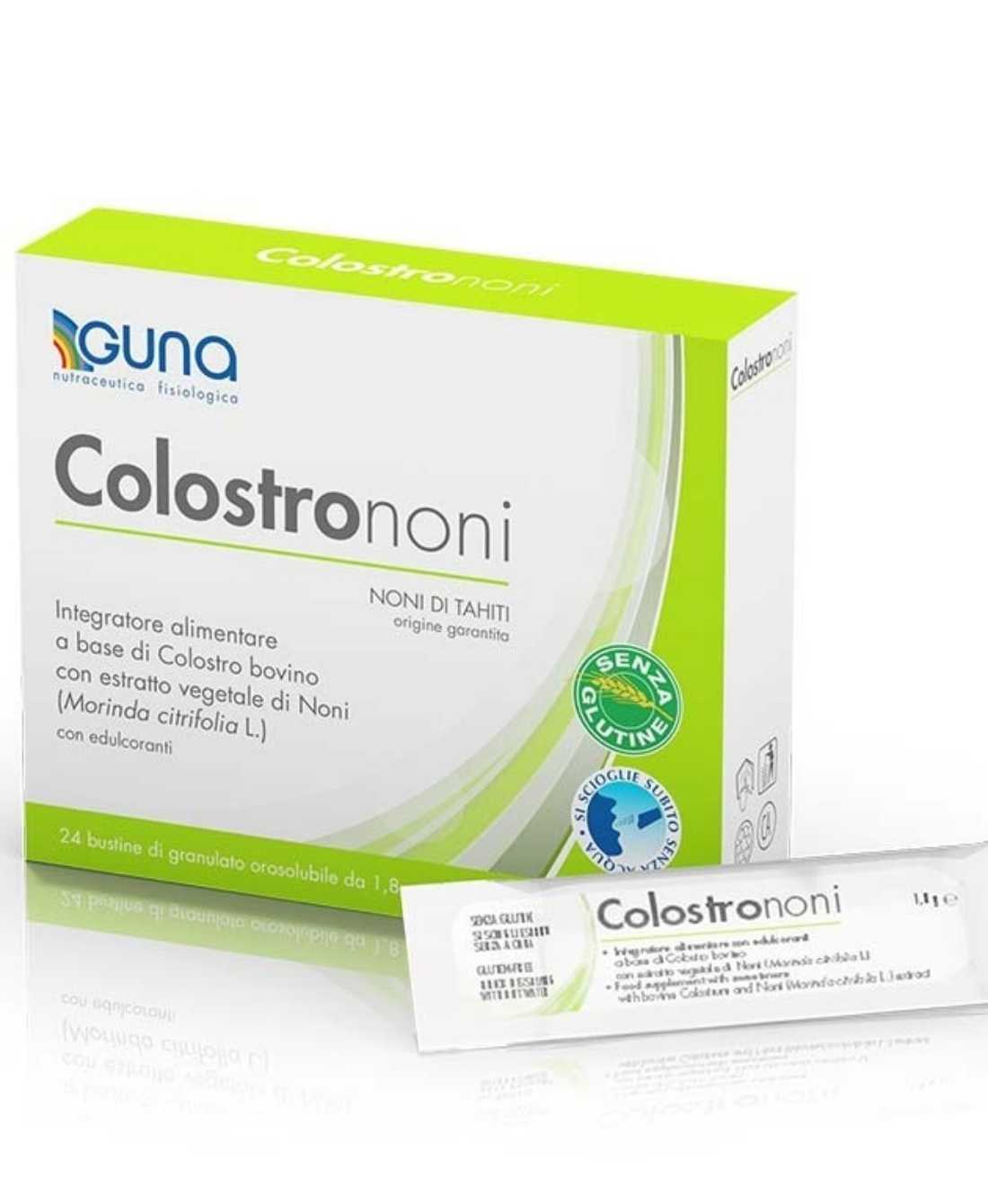 Guna ColostroNoni Colostro Noni Integratore Alimentare Senza Glutine 24 Bustine 1,8 g