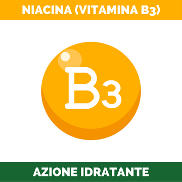 La niacina, nota anche come vitamina B3, è un ingrediente popolare per i suoi diversi benefici per la pelle. Aiuta a rafforzare la barriera cutanea, che è lo strato protettivo esterno della pelle, prevenendo la disidratazione e mantenendo l'equilibrio idrico della pelle.