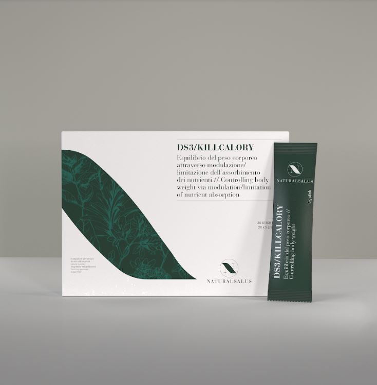 L’azione degli ingredienti presenti in DS3/KILLCALORY è in grado di limitare l’assorbimento dei nutrienti, contribuendo al controllo del perso corporeo (opuntia) e alla funzione digestiva (opuntia, zenzero, menta e finocchio)