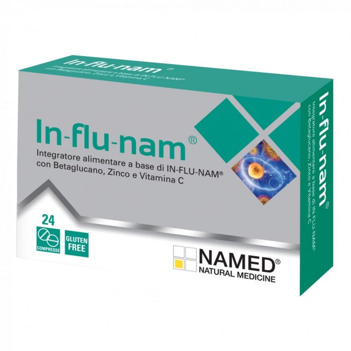 Integratore alimentare a base di Influnam, Betaglucano, Zinco e Vitamina C.