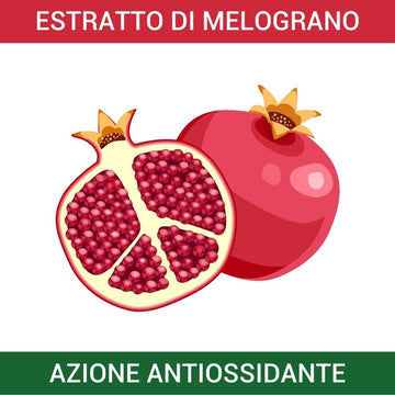 - Il Melograno contiene antiossidanti, come i flavonoidi e i tannini, che aiutano a proteggere la pelle dai danni causati dai radicali liberi. lnoltre contiene un'alta quantità di vitamina C, che è importante per la produzione di collagene, una proteina che mantiene la pelle sana e giovane. (Fonte: "Antioxidant and anti-inflammatory effects of pomegranate peel extract on human dermal fibroblasts" di H. Kim, J. Lee, E. Kim e D. Lee, pubblicato su "International Journal of Molecular Medicine" nel 2016).