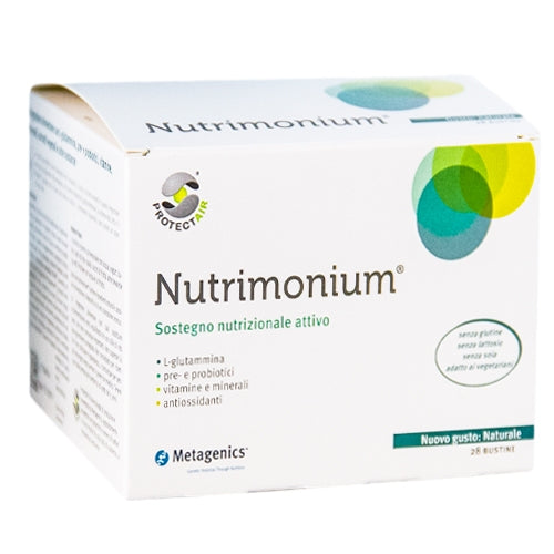 Integratore alimentare con L-glutammina, pre- e probiotici, vitamine, minerali, estratti vegetali e altre sostanze. Mescolabile con acqua, yogurt, budino, latte (di riso o soia) e succhi di frutta. È dimostrato che il magnesio, il calcio e lo zinco presenti in questo integratore sono forme biodisponibili che presentano un’eccellente tollerabilità gastrointestinale. Le vitamine B6, B12 e il Metafolin aggiunte sono le forme più attive ed efficaci: direttamente disponibili, sono pronte ad agire nell’organismo.